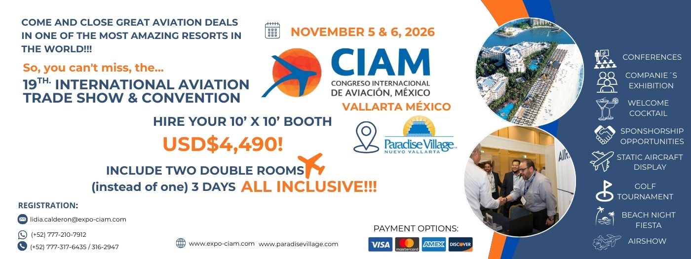 The CIAM, International Aviation Trade Show & Convention, will be held in Puerto Vallarta, Jalisco, México.